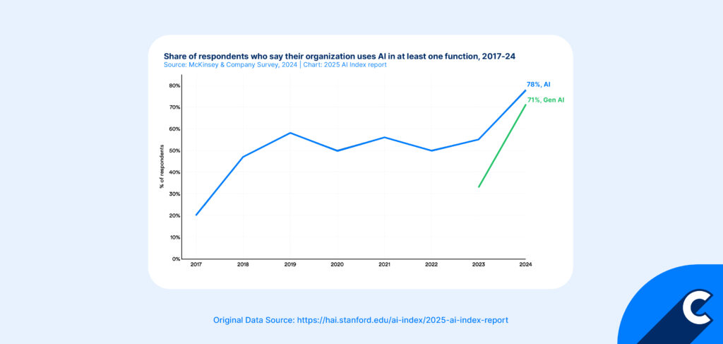 In 2024, in the U.S. alone, private AI investment grew to $109.1 billion, with countries like China and the UK also gaining momentum. Nowadays, most clients, investors, and stakeholders want to see how your business integrates AI into your processes. However, many companies still use one-time solutions that don’t deliver sustainable or measurable results.