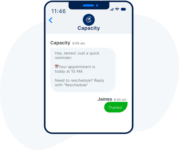 Capacity automates email, SMS and webhook notifications, keeping teams and customers informed about upcoming appointments to improve engagement and reduce no-shows, as well as sending post-meeting communications to share follow-up details, request feedback and provide next steps for continued support.