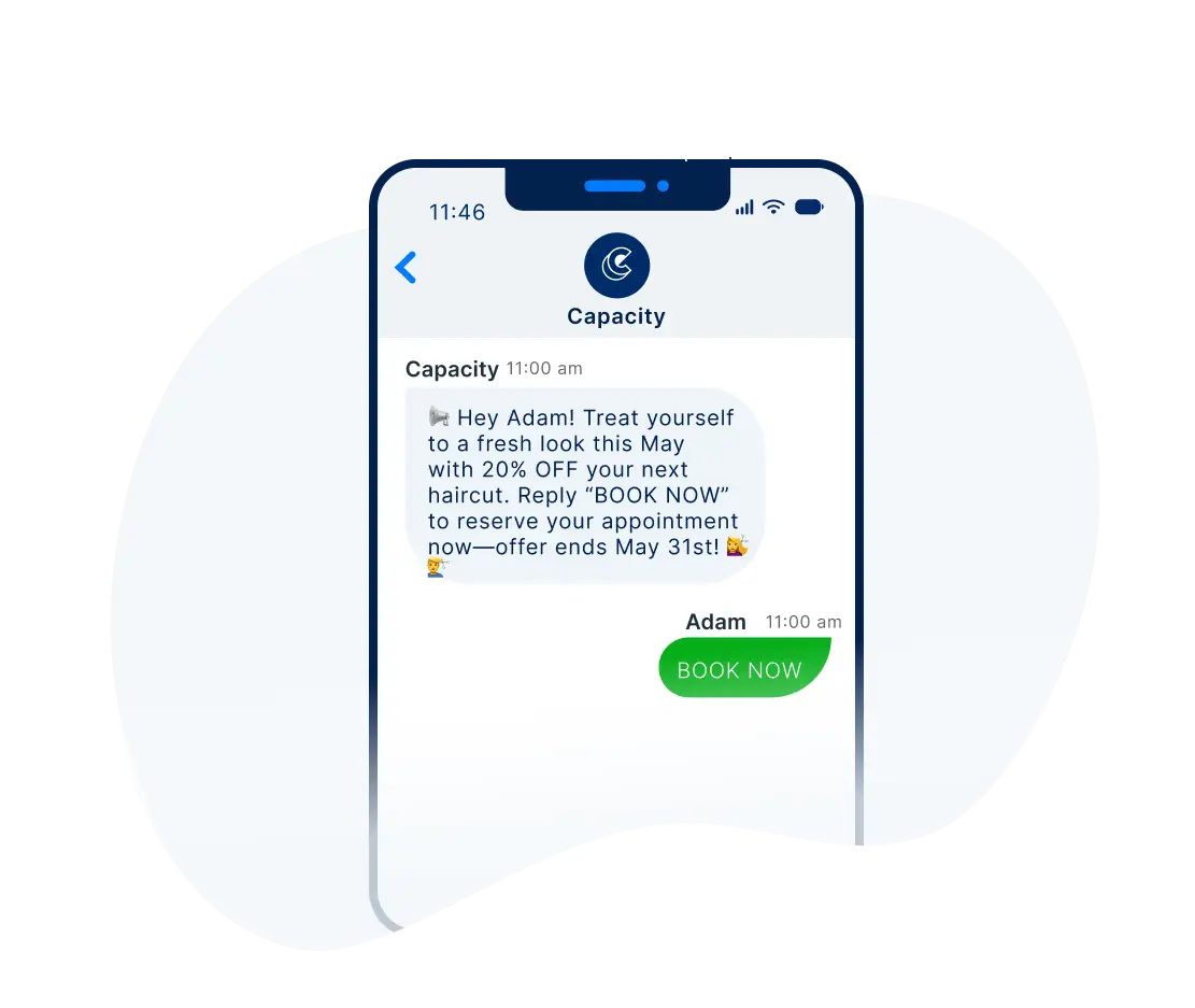Capacity SMS lets businesses send and receive text messages to engage customers, improve communication and drive sales with targeted, real-time messaging.